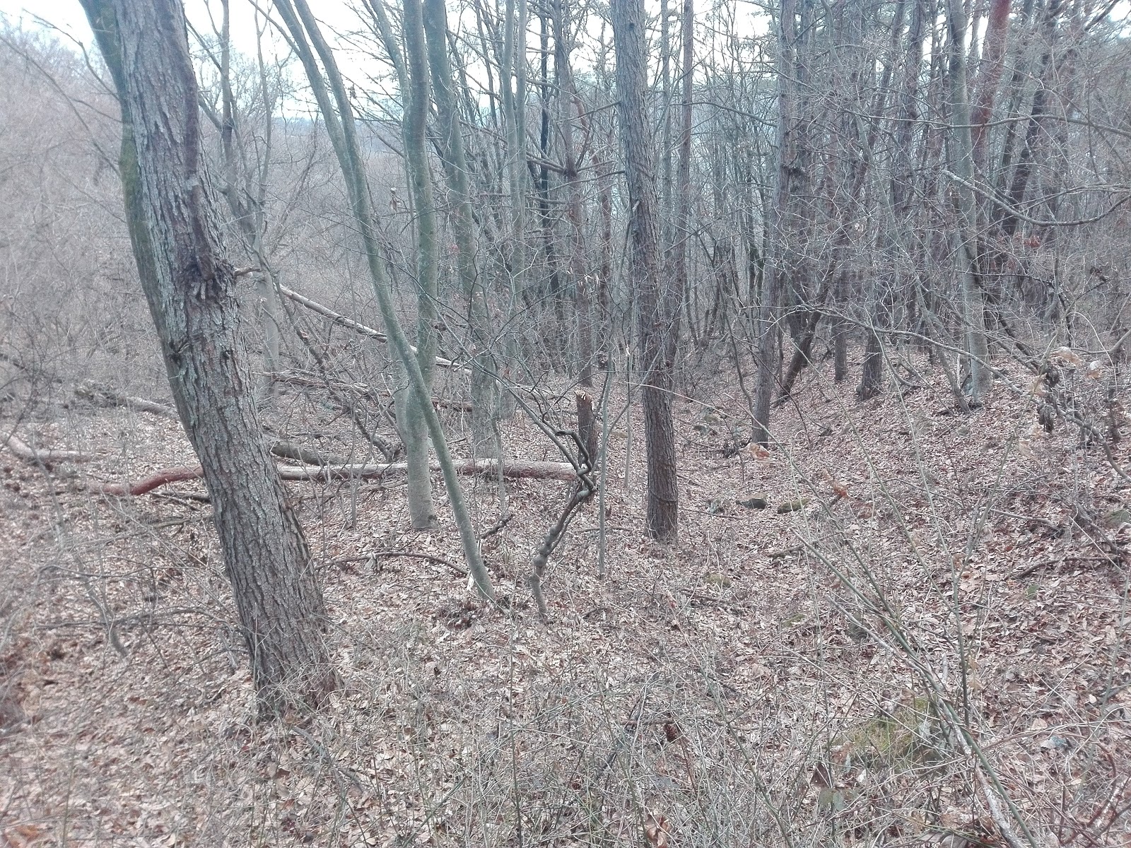 右側の郭から左の郭方面をみる。ここから城跡遺構が明確になるようだ。