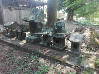 参道脇の民家(神主宅?)前にある石塔の残欠。